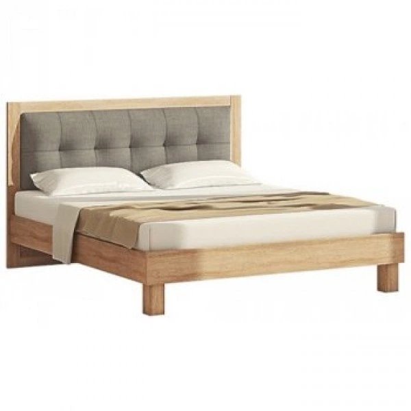 Ліжко двоспальне з ДСП з м'яким узголів'ям Еко 1 160x200 дуб вибілений Комфорт Меблі (без матраца)