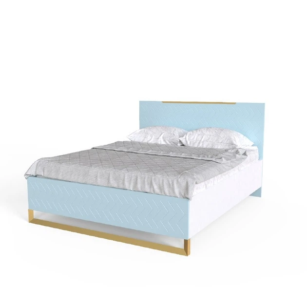 Ліжко двоспальне Swan 160x200 ДСП ламіноване дуб тахо/МДФ блакитна лагуна/метал золотистий Art in Нead (без матраца)