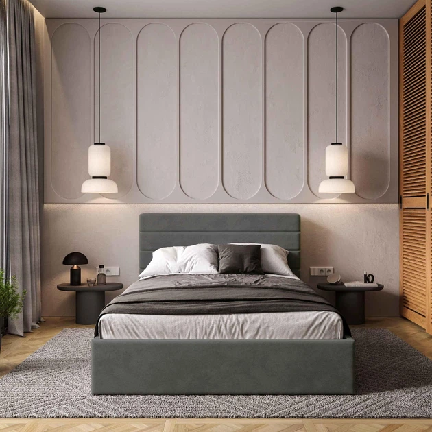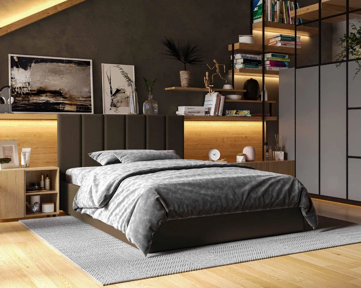 Ліжко двоспальне з підйомним механізмом Line 160x200 Viorina-Deko (без матраца) DARK GREY