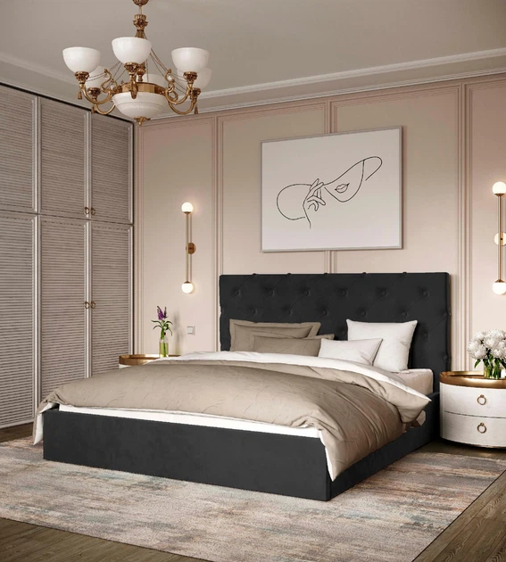Ліжко двоспальне з підйомним механізмом Велюр 160x200 Viorina-Deko (без матраца) DARK GREY