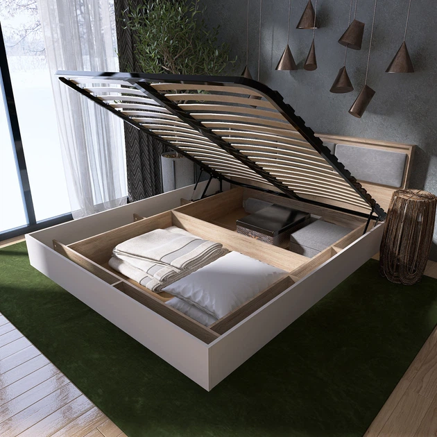 Ліжко двоспальне Tobi Sho NORDIC з підйомним механізмом, 1600х2000 мм Дуб крафт золотий/білий