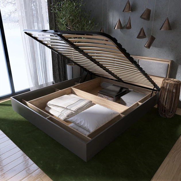 Ліжко 1400 СІТІ, з ламелями та підйомним механізмом, Еверест, Дуб Сонома, Графіт