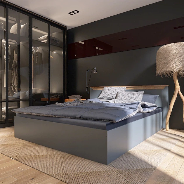 Ліжко двоспальне Tobi Sho NORDIC з підйомним механізмом, 1600х2000 мм Дуб крафт золотий/графіт
