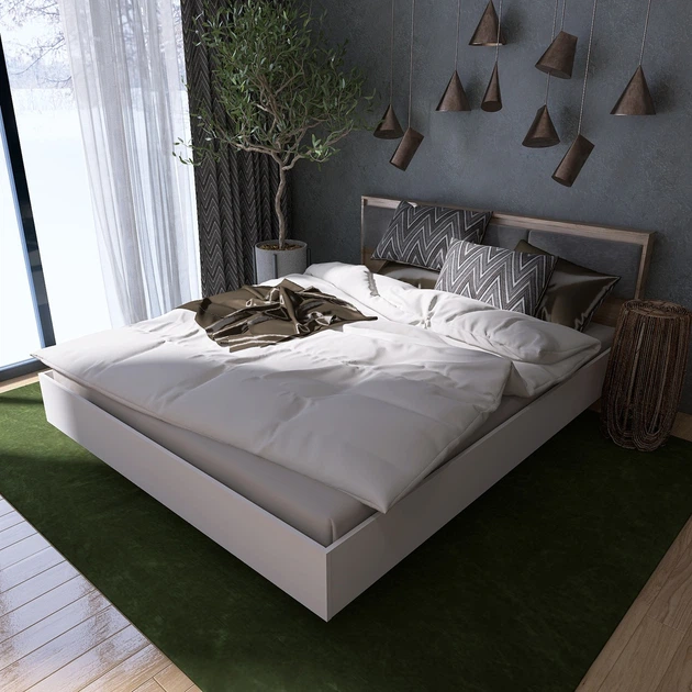 Ліжко 1400 СІТІ, з ламелями та підйомним механізмом, Еверест, Дуб Сонома, Білий