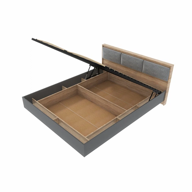 Ліжко двоспальне з підйомним механізмом Еверест Сіті-1400 200,5х148,8х82,6 см Дуб сонома/Графіт (TQP-071092)