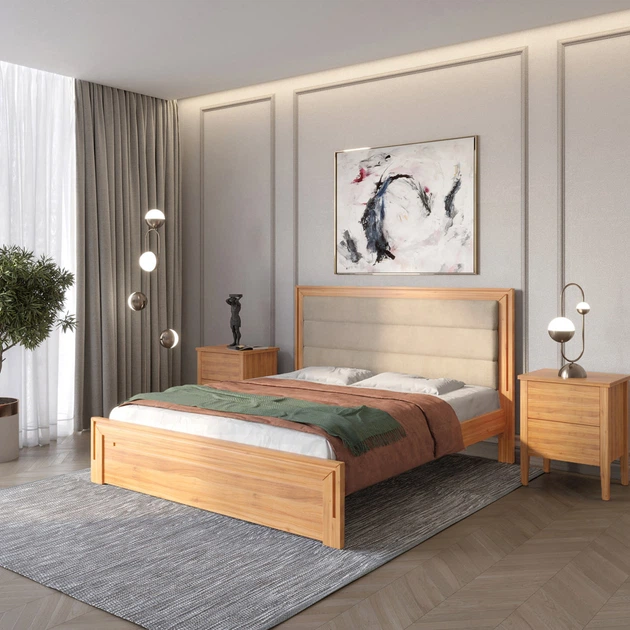 Односпальне дерев'яне ліжко Mebigrand Торонто Т1 Горіх світлий/Аляска 23 (бежевий) 90х200 см (MBG-7268)