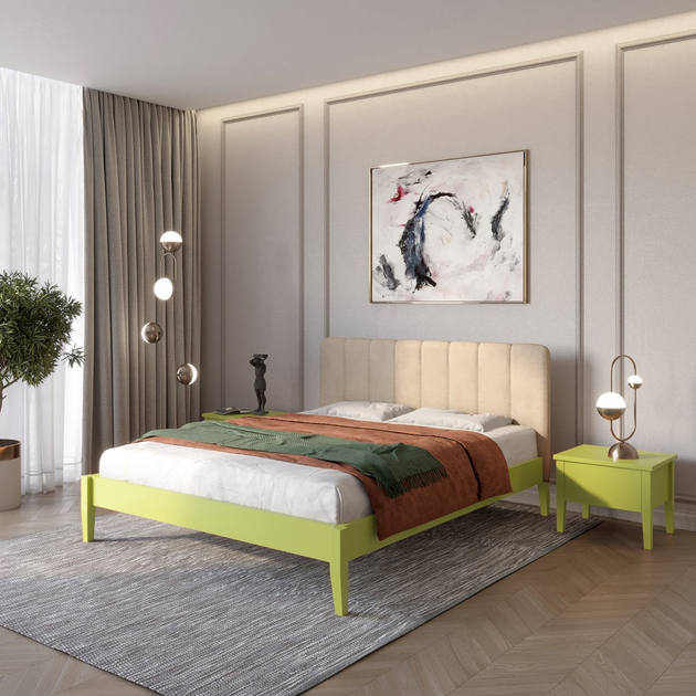 Двоспальне дерев'яне ліжко Mebigrand Лондон ДК Оливковий (RAL1020)//Аляска 23 (Бежевий) Б1 180х200 см (MBG-6824)