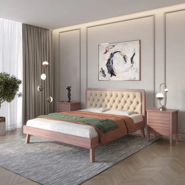Двоспальне дерев'яне ліжко Mebigrand Токіо Горіх лісовий/Аляска 23 (Бежевий) 180х190 см (MBG-4816)