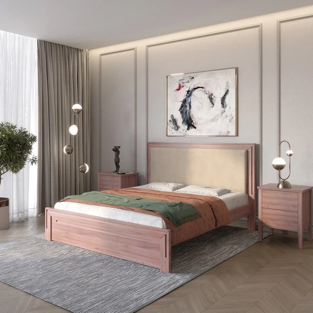 Двоспальне дерев'яне ліжко Mebigrand Торонто Т5 Горіх лісовий/Аляска 23 (бежевий) 180х190 см (MBG-10555)