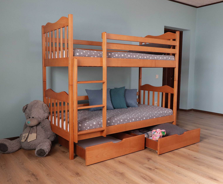 Ліжко двоярусне дерев'яне покриття лак з висувними ящиками 90х190 Сонька Дрімка