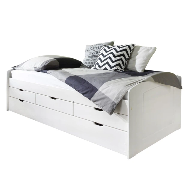 Ліжко односпальне B022 з ящиками і додатковим спальним місцем дерево білий Mobler (без матраца)