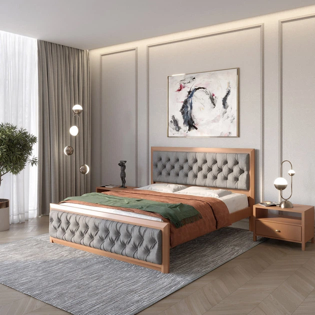Двоспальне дерев'яне ліжко Mebigrand Барселона Б4 Світло-сірий (RAL-7040)/Аляска 23 (Бежевий) 180х200 см (MBG-12887)