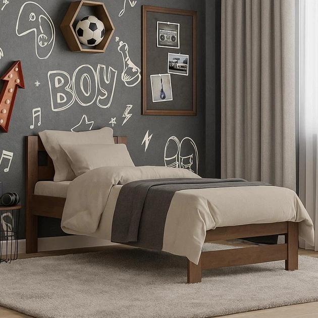 Односпальне ліжко дерев'яне 90х200 см ортопедичне в кольорі горіх з масиву дерева бука для дорослого для дитини підлітка шко
