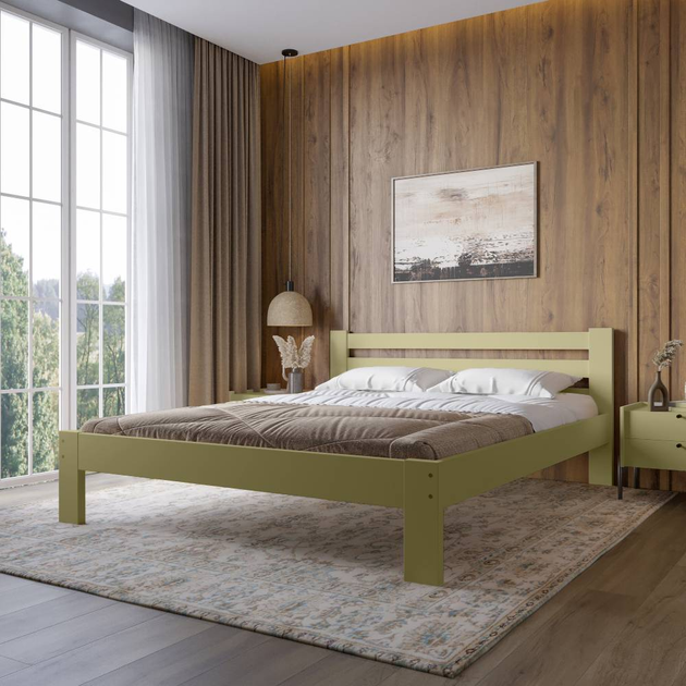 Двоспальне дерев'яне ліжко Mebigrand Баварія Оливковий (RAL1020) 160х200 см (MBG-14823)