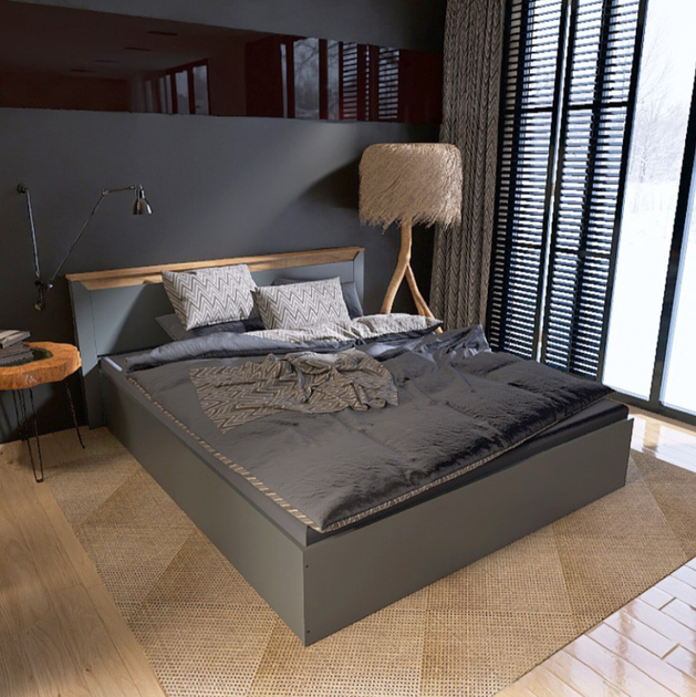 Ліжко 1600 Нордик, 160*200 см, з основою під матрац - Щит ДСП, Дуб Крафт Золотий, Графіт