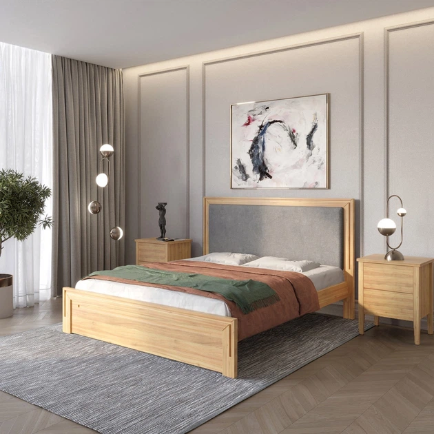 Двоспальне дерев'яне ліжко Mebigrand Торонто Т6 Горіх світлий/Аляска 93 (сірий) 160х190 см (MBG-6957)