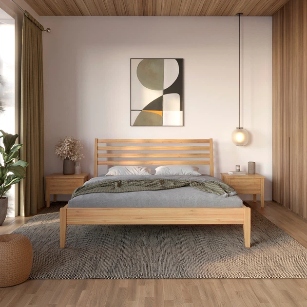 Двоспальне ліжко дерев'яне Палермо 150х220 Прозора олія Крок ламелів 5,5 см.