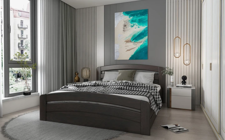 Ліжко з натурального дерева сосна з підйомним механізмом Ліра-ПМ 160x200 темний горіх Stemma