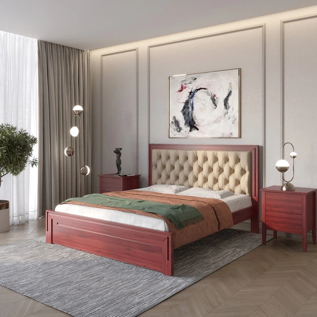Двоспальне дерев'яне ліжко Mebigrand Торонто Т4 Махонь/Аляска 23 (бежевий) 180х190 см (MBG-8850)