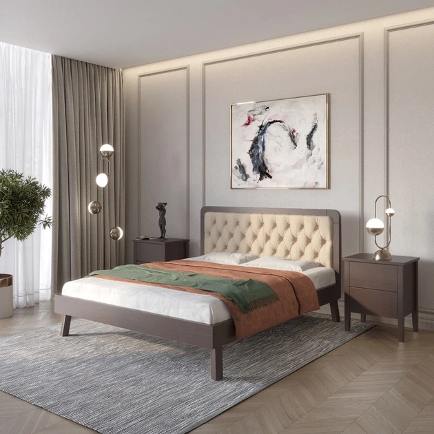 Двоспальне дерев'яне ліжко Mebigrand Торонто Т5 Венге/Аляска 23 (бежевий) 180х190 см (MBG-10513)