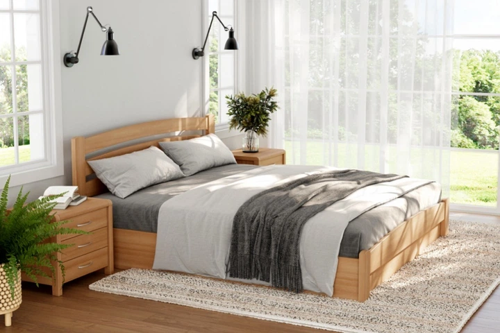 Дерев'яне ліжко MNGER Мерлінда з бука (масив), 160x200, з підйомним механізмом, 4,5 см між ламелями, кольору