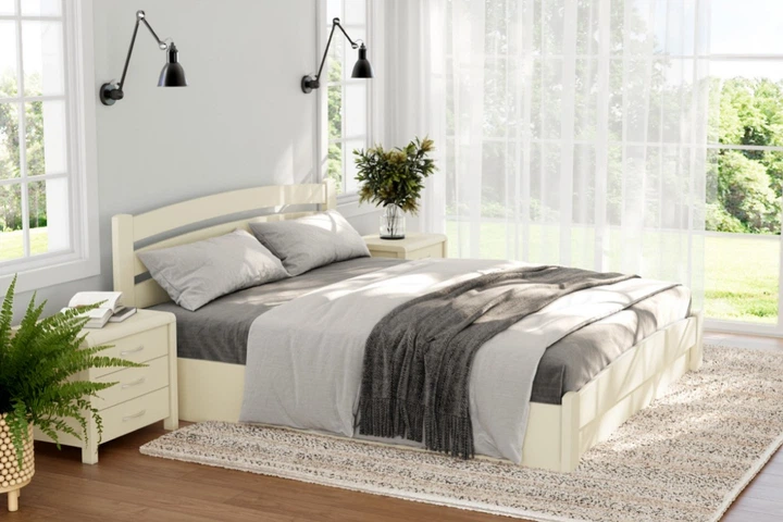 Дерев'яне ліжко MNGER Мерлінда з бука (масив), 160x200, з підйомним механізмом, 4,5 см між ламелями, кольори слонової кістки