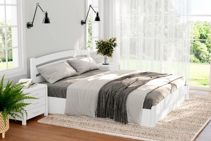 Двоспальне ліжко дерев'яне Лоренцо 200х220 з підйомним механізмом Біла емаль Крок ламелів 2,5 см.