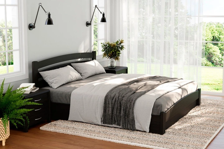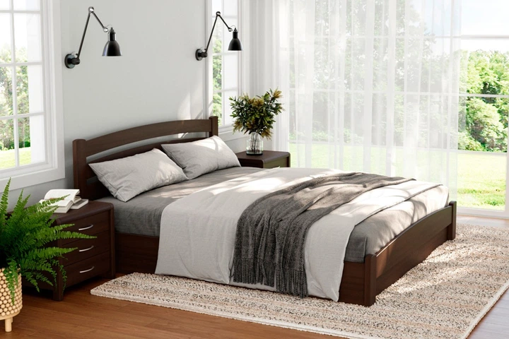 Дерев'яне ліжко MNGER Мерлінда з бука (масив), 160x200, з підйомним механізмом, 4,5 см між ламелями, кольори горіх