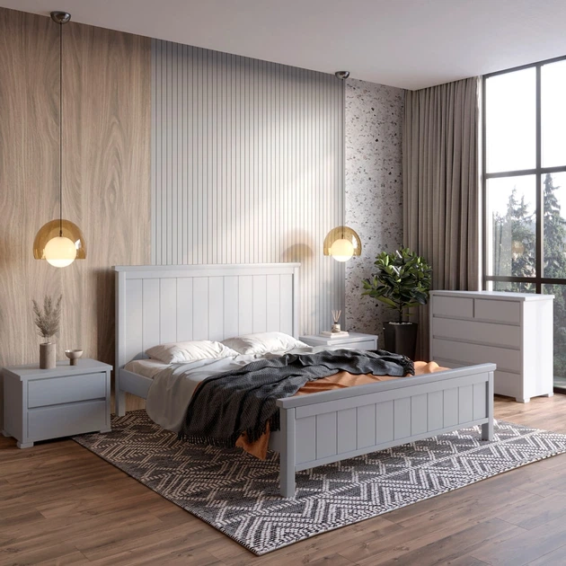 Двоспальне дерев'яне ліжко Mebigrand Вірджинія Світло-сірий (RAL-7040) 160х190 см (MBG-3212)