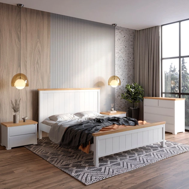 Двоспальне ліжко Mebigrand Вірджинія Білий (RAL9003)/Горіх світлий 160х190 см (MBG-1616)