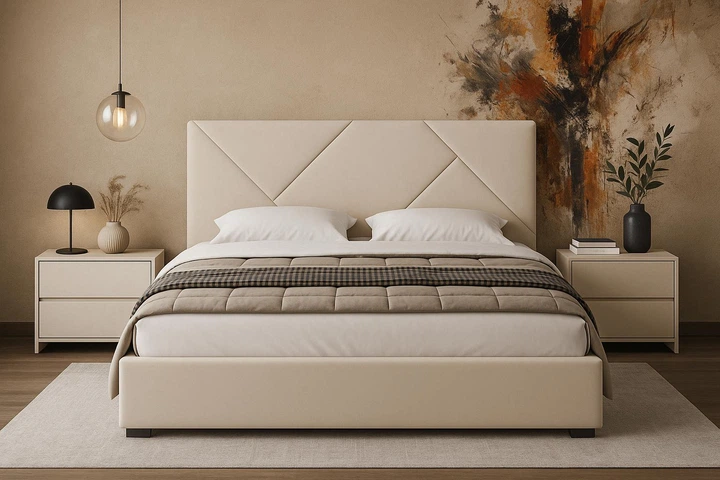 Стильне двоспальне м'яке ліжко велюр світлий беж 160х200 см з матрацом з підйомним механізмом з місцем для зберігання білизн