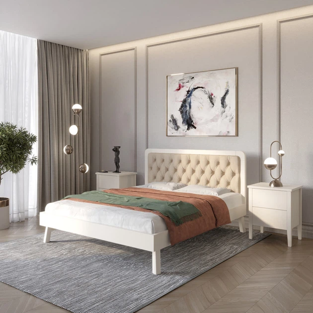 Двоспальне дерев'яне ліжко Mebigrand Токіо Білий (RAL9003)/Аляска 23 (Бежевий) 180х190 см (MBG-4624)