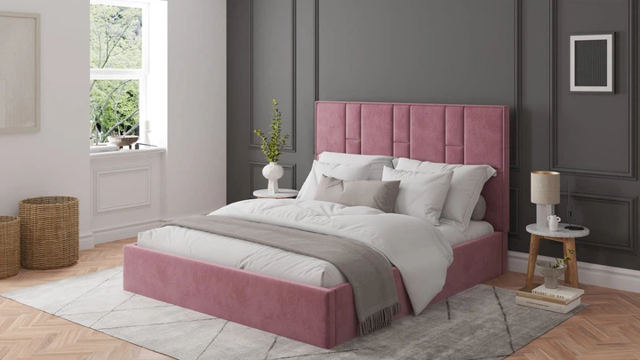 Ліжко двоспальне з м'яким узголів'ям без матраца 160x200 Саманта 1 Світ Меблів з металевим каркасом Рожевий (ДСП/Тканина Вел