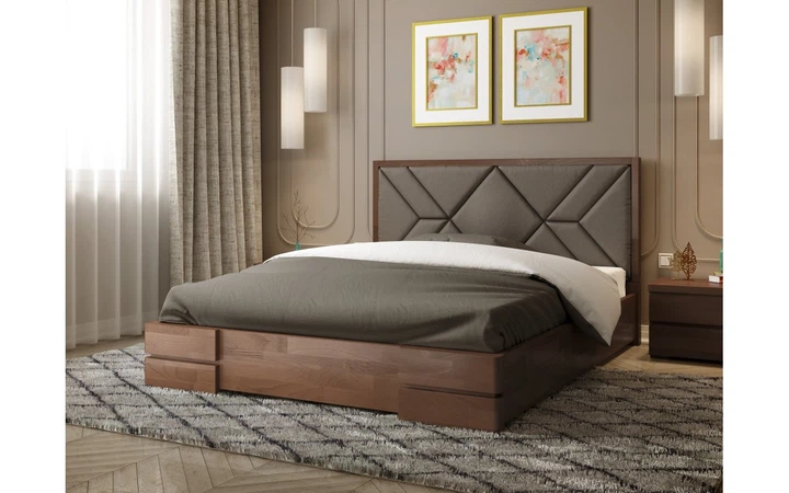Ліжко двоспальне з натурального дерева сосна 160х200 з підйомним механізмом Камелія ромб Горіх темний Арбор Дерево