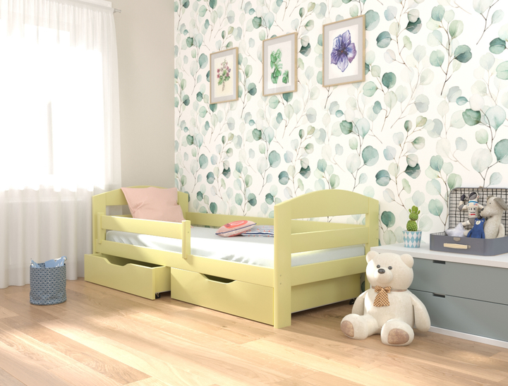 Ліжко односпальне в дитяче з натурального дерева Адель 80х200 з бортиком та ящиками вільха Luna (без матраца)