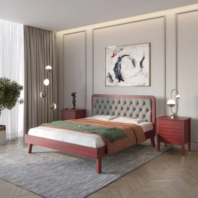 Двоспальне дерев'яне ліжко Mebigrand Токіо Махонь/Аляска 93 (Сірий) 160х190 см (MBG-4788)