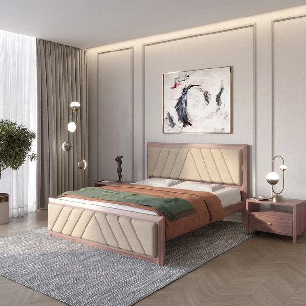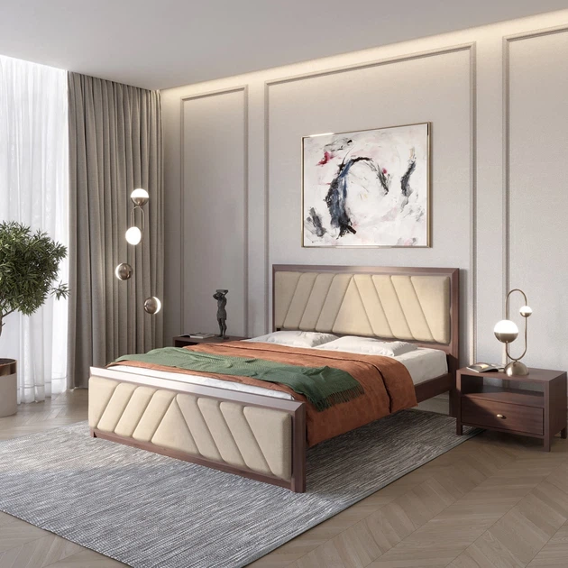 Двоспальне дерев'яне ліжко Mebigrand Барселона Б2 Горіх темний/Аляска 23 (Бежевий) 180х190 см (MBG-12442)