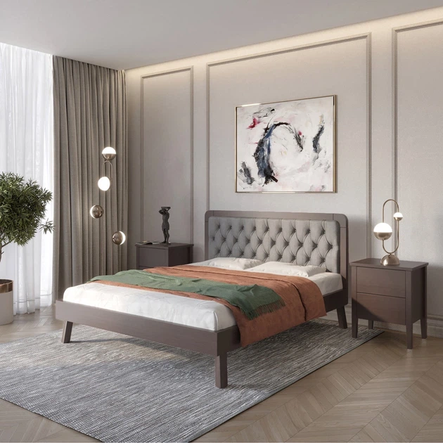 Двоспальне дерев'яне ліжко Mebigrand Торонто Т6 Махонь/Аляска 93 (сірий) 160х190 см (MBG-9535)
