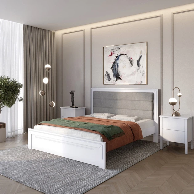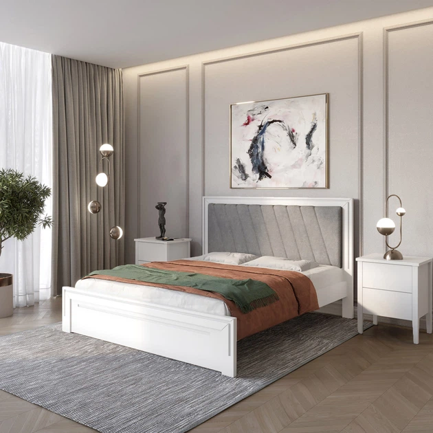 Односпальне дерев'яне ліжко Mebigrand Торонто Т6 Білий (RAL9003)/Аляска 93 (сірий) 90х200 см (MBG-9835)