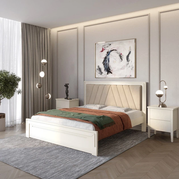Односпальне дерев'яне ліжко Mebigrand Торонто Т2 Білий (RAL9003)/Аляска 23 (бежевий) 90х200 см (MBG-7670)