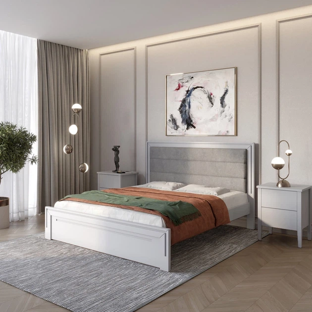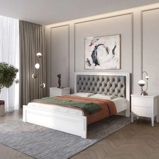 Односпальне дерев'яне ліжко Mebigrand Торонто Т3 Білий (RAL9003)/Аляска 93 (сірий) 90х200 см (MBG-8091)
