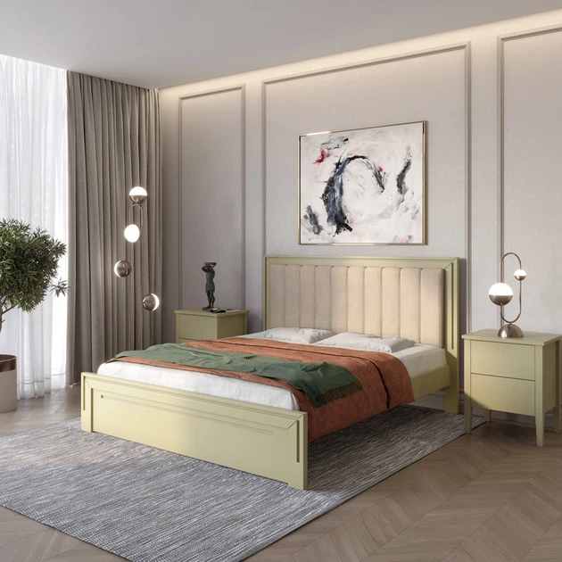 Двоспальне дерев'яне ліжко Mebigrand Торонто Т1 Оливковий (RAL1020)/Аляска 23 (бежевий) 160х190 см (MBG-8518)