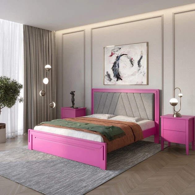 Двоспальне дерев'яне ліжко Mebigrand Торонто Т4 Рожевий (S2060R30B)/Аляска 93 (сірий) 160х190 см (MBG-9205)