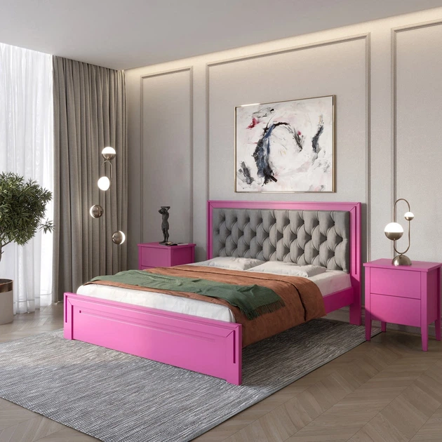 Двоспальне дерев'яне ліжко Mebigrand Торонто Т2 Рожевий (S2060R30B)/Аляска 93 (сірий) 160х190 см (MBG-8976)