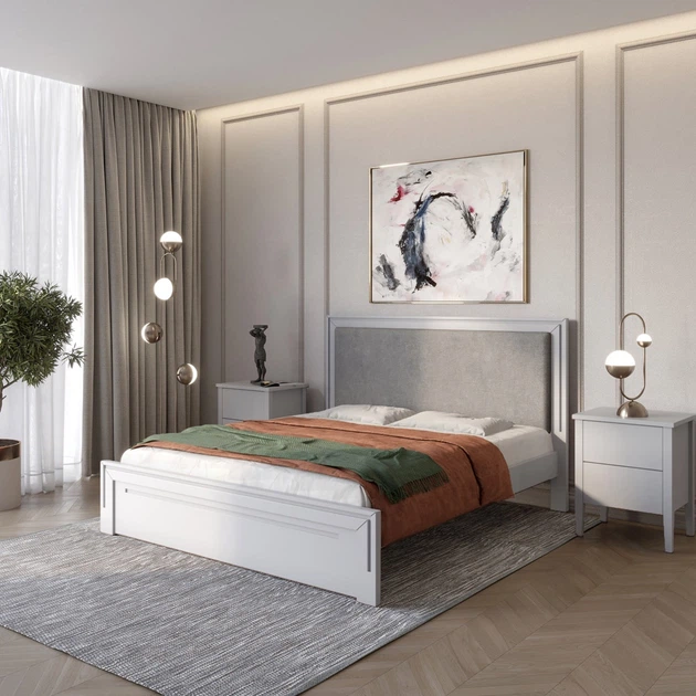 Односпальне дерев'яне ліжко Mebigrand Торонто Т4 Білий (RAL9003)/Аляска 93 (сірий) 90х200 см (MBG-9074)