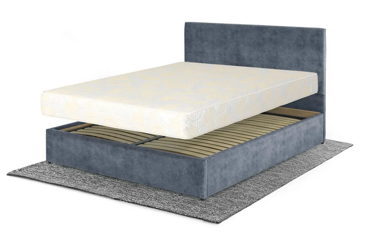 Ліжко з матрацом Лаванда 160 200 см, велюр, без підйомного механізму, синьо-сірий