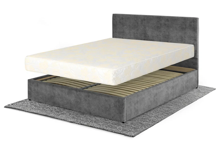 Ліжко з матрацом Лаванда 160 200 см, велюр, без підйомного механізму, темно-сірий