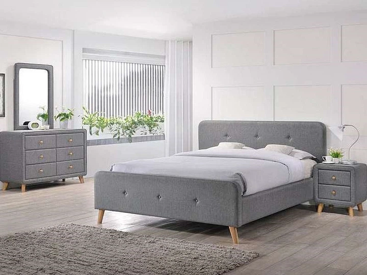 Ліжко полуторне дерев'яна з м'яким узголів'ям Malmo 140x200 Signal сірий (з каркасом, без матраца)