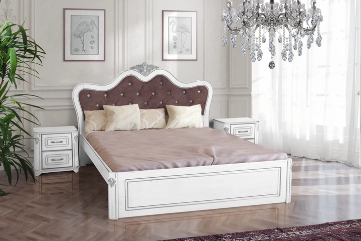 Ліжко двоспальне з м'яким узголів'ям 160х200 з основою Стефанія Мікс Меблі Білий + патина срібло / Коричневий (натуральне де