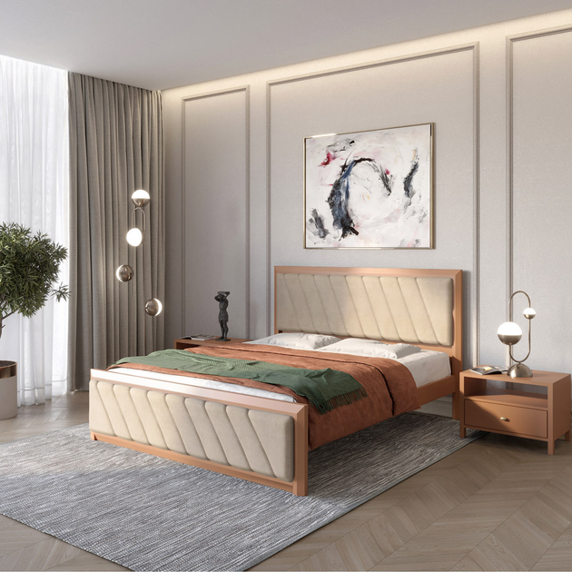 Односпальне дерев'яне ліжко Mebigrand Барселона Б6 Коричневий (RAL8025)/Аляска 23 (Бежевий) 90х190 см (MBG-13334)